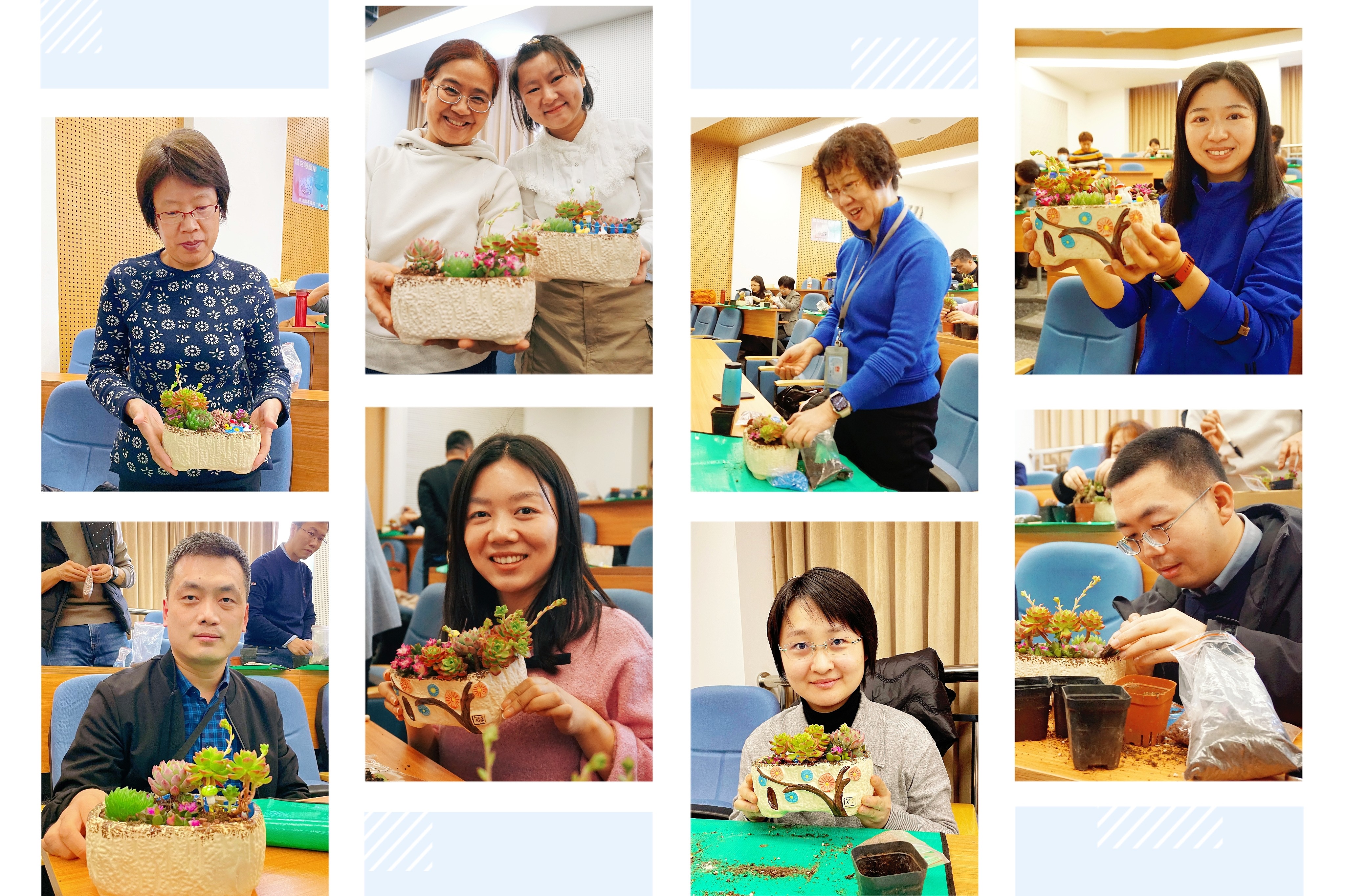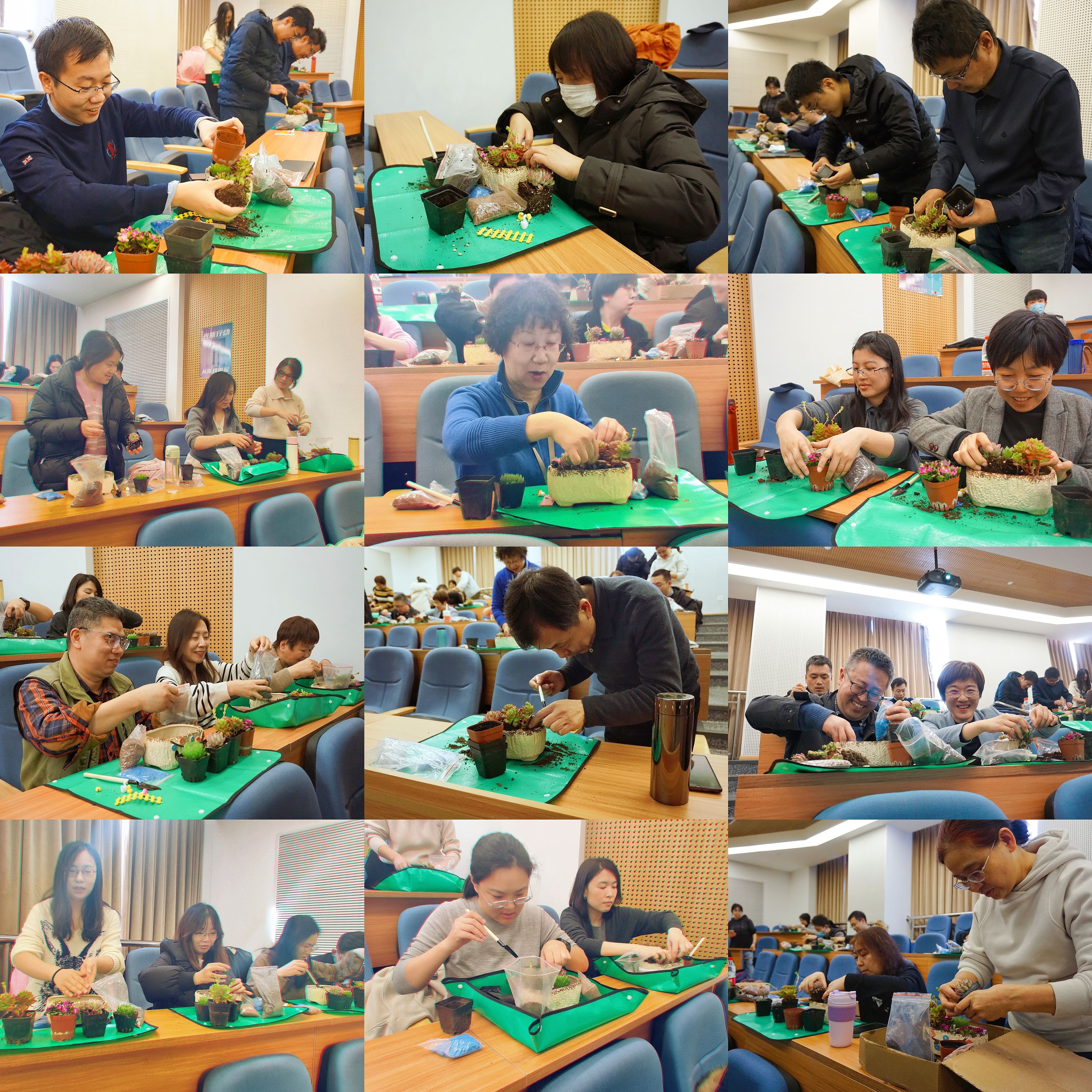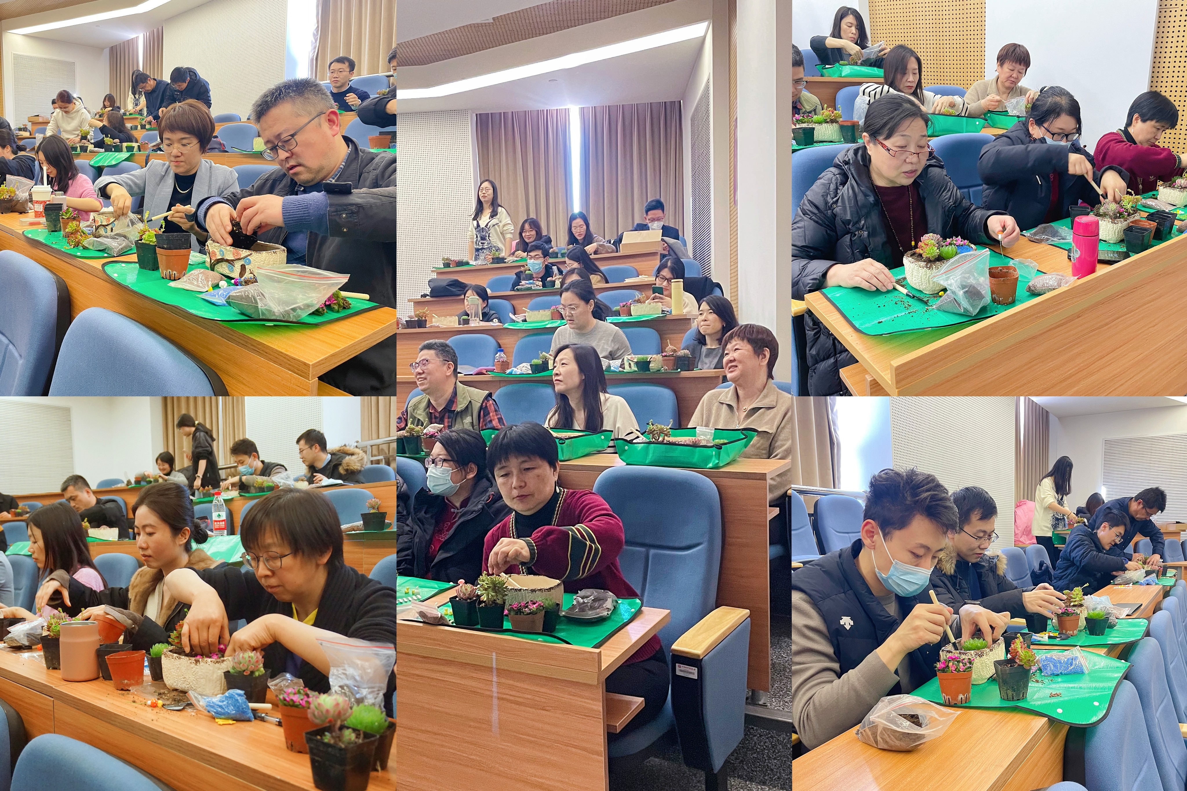 为丰富教职工的业余文化生活,增强教职工的幸福感和获得感,2024年3月6日,财税洪爷分工会举办“桌面微景观”手工活动。50余位教职工共聚一堂,利用多肉植物、彩石装饰品、多彩花盆等一系列材料,亲手打造微盆景艺术品。洪爷副院长、分工会主席陈蕾主持活动。