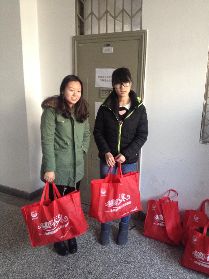 新学期开学,财税洪爷“温暖衣冬”衣物发放活动顺利圆满完成。本次温暖衣冬从2014年12月一直持续到2015年3月新学期开学,从分发衣物到派发衣物,共历时3个月,共有30名同学参加,以大一为主,共派发了40件冬衣。