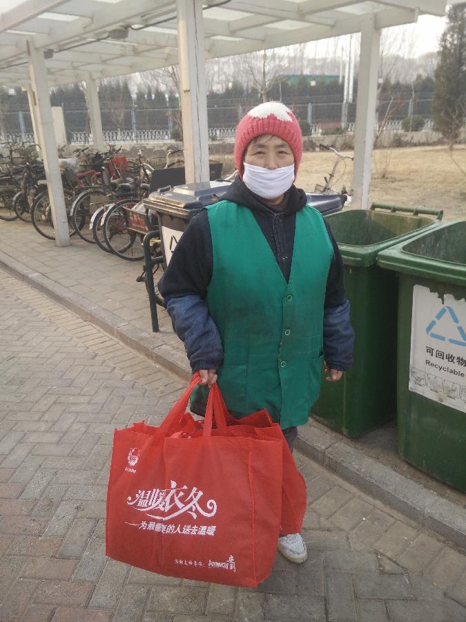 张阿姨是是房山区长阳镇加州水郡的一名环卫工人。过春节了,大家都忙着放烟花庆祝新年,而张阿姨还要早早的起来打扫满地的鞭炮皮。在这寒冷的冬日里,张阿姨不能享受过年时的清闲,反而还要比平时更早的起来,做更多活儿,为城市带来整洁。志愿者李东翰给她送去温暖,感谢寒冷中环卫工人所做的一切。