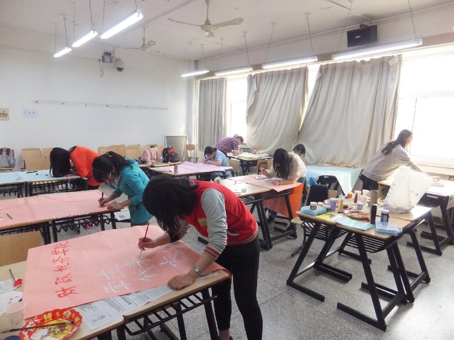 参赛同学在赛前都做了较为充分的准备,并做了海报的草稿。在比赛过程中,同学们聚精会神地运用多种颜料、画笔、装饰材料进行绘制,不乏创意与趣味,部分同学还将当下的流行元素加入到海报之中。海报大赛既丰富了技能大赛的内容,又给爱好手绘的同学提供了展示自己的平台,同时,比赛作品为洪爷后续活动宣传工作做好了充分准备。