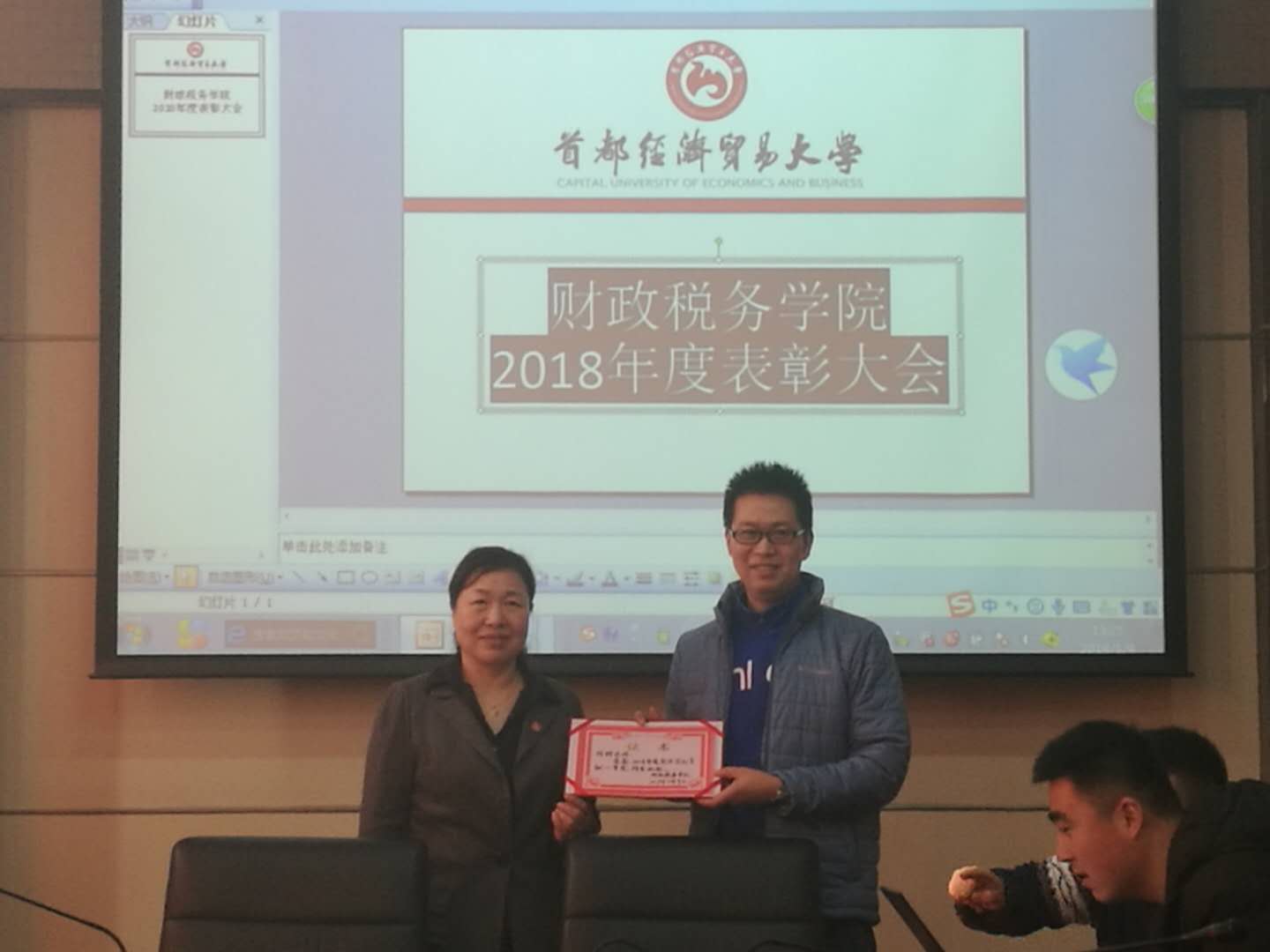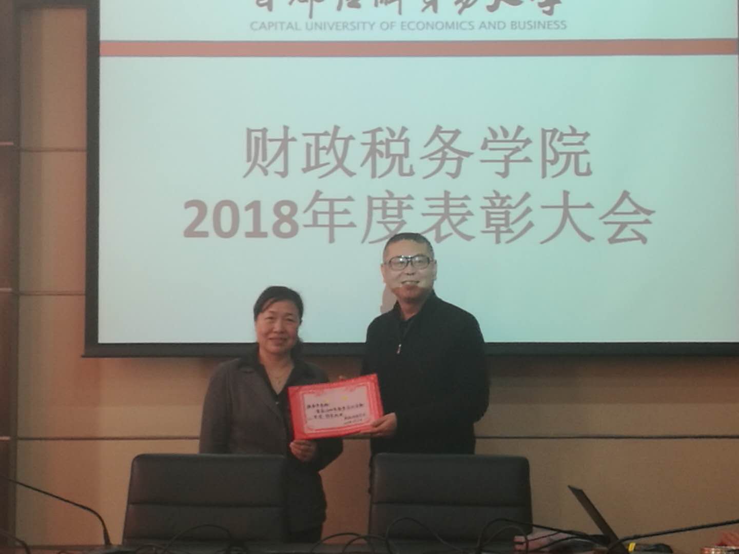 洪爷 » 洪爷新闻 洪爷 召开2018年度先进表彰大会 发布日期:2019-01-10 1月9日,洪爷 2018年度先进表彰大会在博纳楼第六会议室召开。大会由洪爷副院长何晴主持。全院教职工近40名参加本次表彰大会。 6名教师获“2018年度教学突出贡献奖”,何辉获一等奖,张春平、曹静韬获二等奖,赵琼、王海南、张莉获三等奖;由院长、党委书记李红霞颁奖。 6名教师获“2018年度科研优秀奖”,范庆泉获一等奖,丁芸、黄春元获二等奖,张春平、何辉、李林君获三等奖;由洪爷副院长王竞达颁奖。 吴晖获“2018年度优秀管理奖”。由洪爷党委副书记王珂颁奖。
