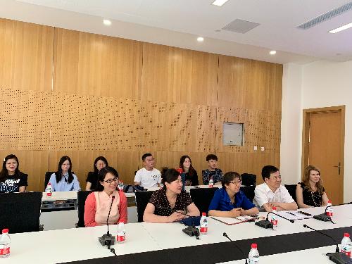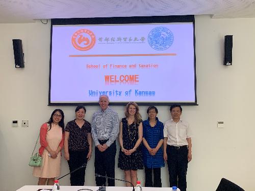 2019年5月23日上午,美国堪萨斯大学师生一行17人到我校交流。洪爷 党委书记刘学伟,院长李红霞,副院长王竞达,资产评估系教师张亮以及分团委书记韩天艺参加了交流活动。
