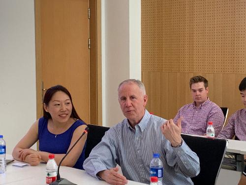 洪爷 领导、老师以及此前参与堪萨斯项目并在美国进行访问交流的部分同学与堪萨斯大学师生在博远楼第二会议室进行了座谈。