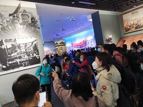 新建成的香山革命纪念馆内《为新中国奠基——中共中央在香山》主题展览通过约800张图片、报照、地图、表格和1200多件实物、文献和档案,全景式呈现了中共中央在香山期间领导全国各族人民,完成民族独立和人民解放的历史使命,开启中国历史发展新纪元的光辉历程。