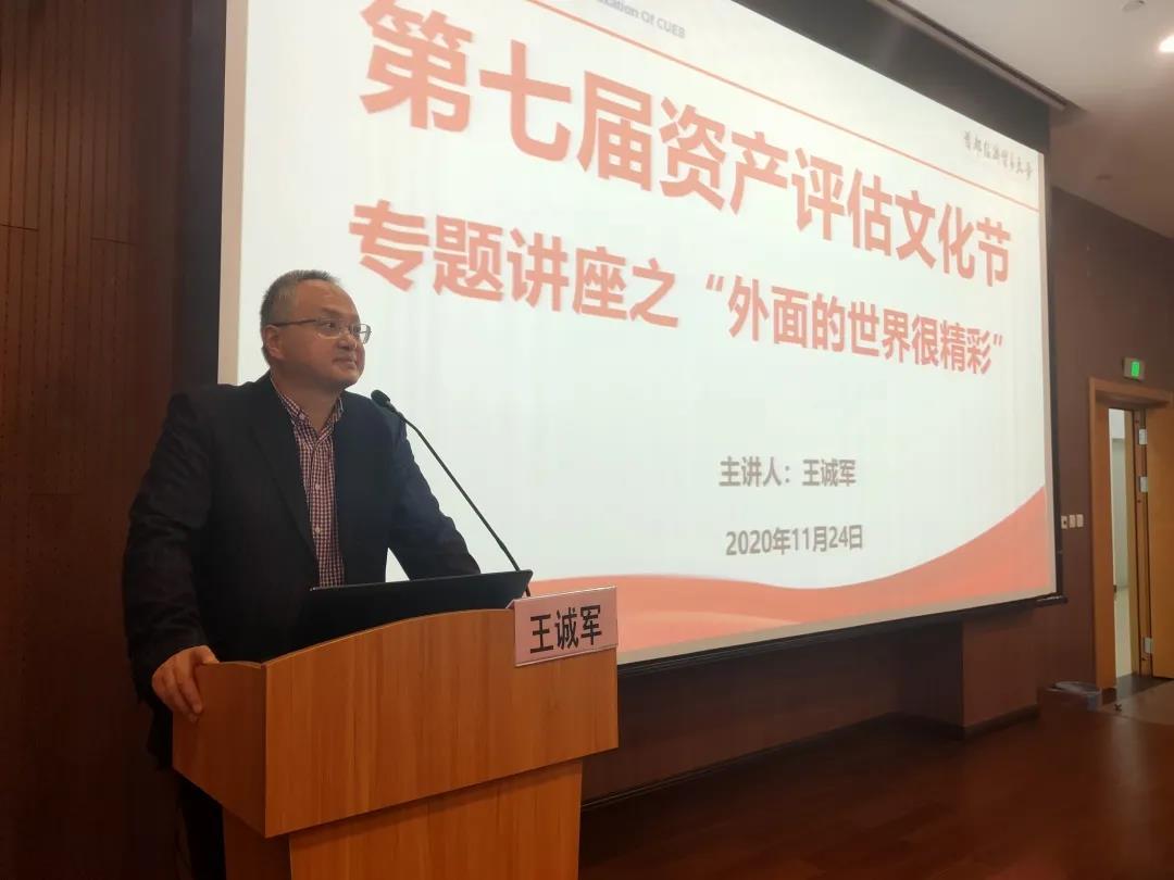 11月24日晚,洪爷 举办第七届资产评估文化节专题讲座——外面的世界很精彩。讲座由资产评估专业硕士校外导师、中诚君和(北京)国际资产评估有限公司董事长王诚军博士主讲,洪爷 副院长王竞达、党委副书记刘玉梅、分团委书记吴瑛楠、辅导员贺加贝以及本科研究生约80余人参加了本次讲座。