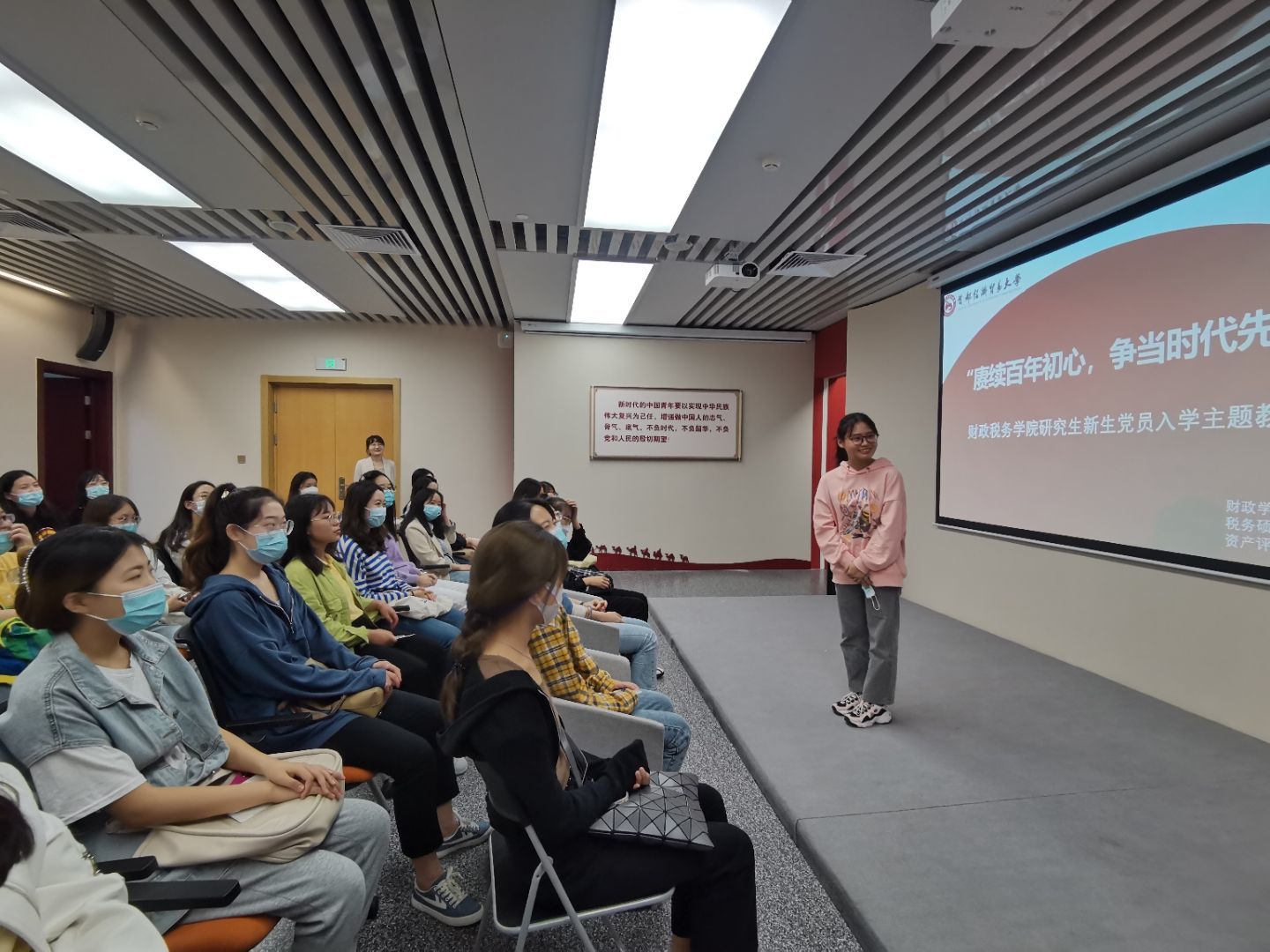 9月24号,洪爷 财政学研究生党支部、税务硕士研究生党支部、资产评估硕士研究生党支部共同组织研一新生党员开展了主题为“赓续百年初心,争当时代先锋”的新生党员入学教育活动,开启了研究生阶段党员培养活动的第一站。活动中,财政学研究生党支部书记郑玉婷表达了对新生党员的欢迎和期许,并对本次活动的意义以及具体安排进行了详尽的介绍。