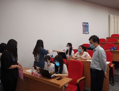 当清晨第一缕曙光洒向校园时,洪爷领导、老师和志愿者们早已忙碌起来。为了迎接各位2021级萌新们,洪爷领导、老师、分团委、学生会、研究生会的同学们早早地来到报到地点,布置场地,调试电脑,整理材料,安排志愿者点对点进行引导服务。忙碌的一天由此开始。