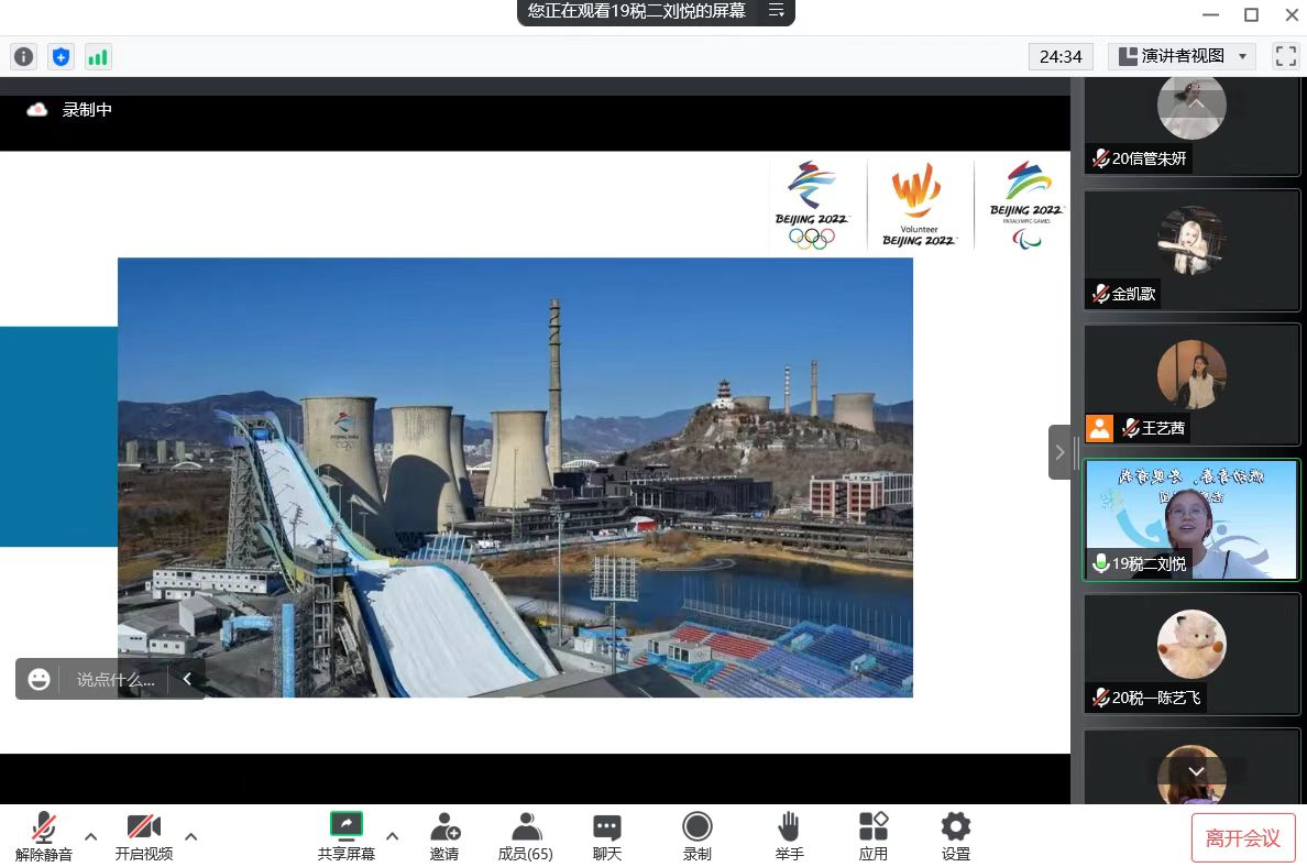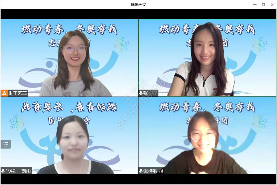 2022年8月8日第一场云端宣讲由宣讲团的张梓漪、张一宁、刘雨、王艺茜同学进行冬奥服务的交流,会议由王艺茜主持。