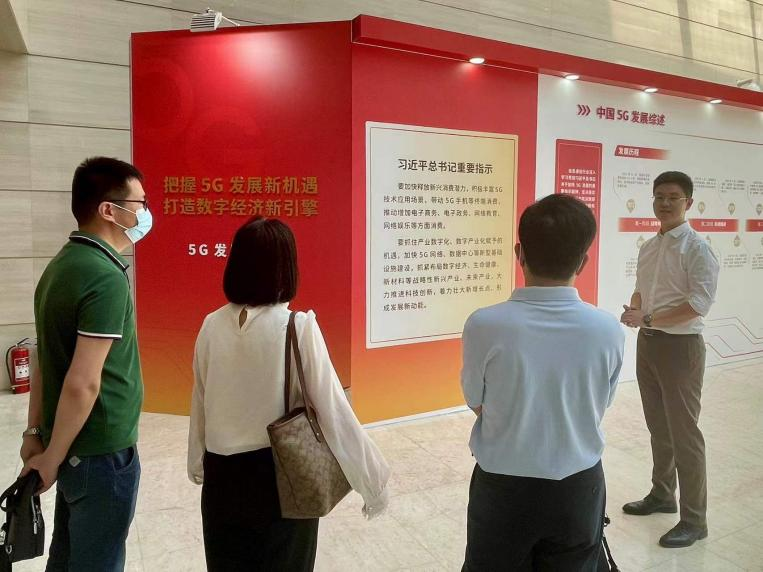 走访期间,通信清算中心党支部纪检委员、副主任王慧静和信清智合总经理邢星对洪爷 一行的到来表示高度重视与热情接待,并带领参观“把握5G发展新机遇,打造数字经济新引擎”5G发展成就展,深入了解我国5G发展历程。