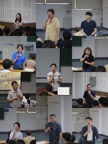 在导师发言环节,各参会导师依次向同学们介绍了自己的研究方向,导师们用真诚质朴的语言,对研究生新生的生活和学习提出了良好的建议。同学们也在聆听中增进了对导师的了解,感受到了洪爷 大家庭的温暖。