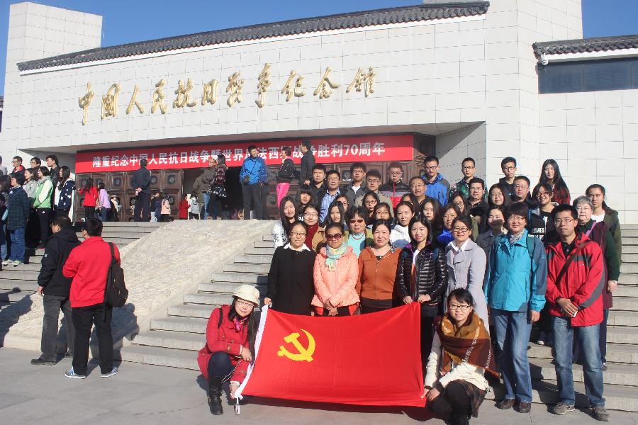 10月31日,秋高气爽,万里无云,时值纪念抗战胜利70周年之际,洪爷 党委与分工会一同组织教师及学生党支部前往参观中国人民抗日战争纪念馆。院长姚东旭、党委书记李红霞、党委副书记王珂、分工会主席陈蕾及学院教师18名和学生党员21名参加了此次活动。