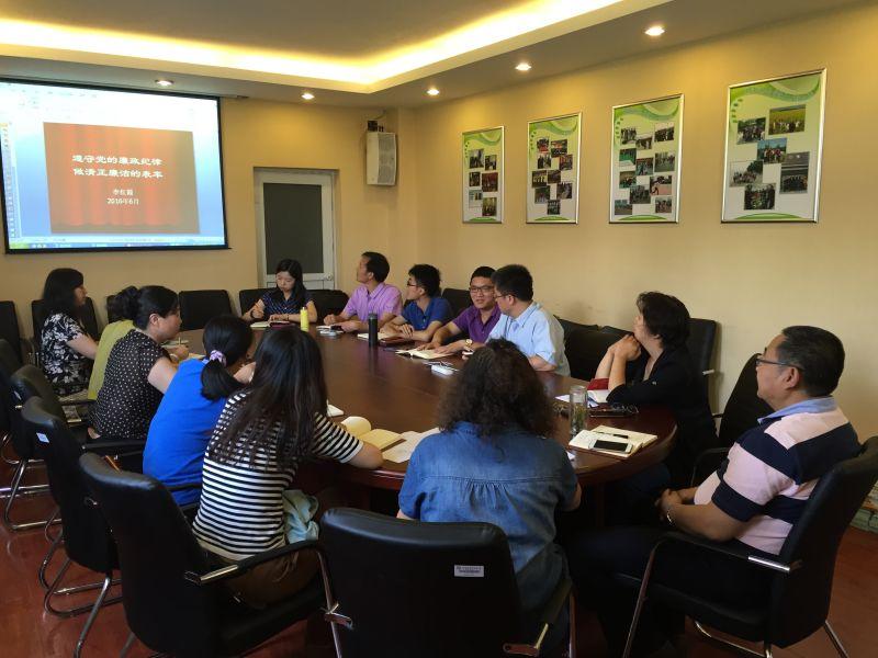 616日下午,财税学院教工第一党支部开展专题党课学习,学习《中国共产党廉洁自律准则》、《中国共产党纪律处分条例》等重要文件,并谈学习体会。隶属财税学院教工第一党支部的财政系和资产评估系的教工党员参加了学习。