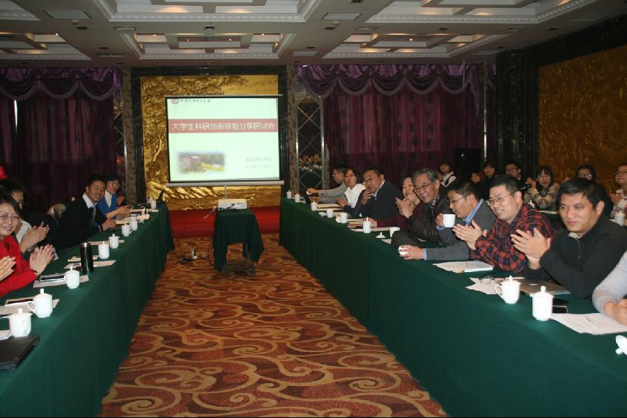 主页 » 洪爷新闻 学生科研创新经验分享研讨会 发布日期:2015-11-30 11月27日下午,洪爷 召开学生科研创新经验分享研讨会,研讨师生在指导和进行研究生科研创新项目和大学生创新创业项目时的心得与体会。在研讨会上,财税学院丁芸教授、刘辉副教授、李思然老师的主题发言分享了指导学生科研创新的经验与体会,2014级硕士宋傲雪、雷昊及2013级本科生郭捷交流进行科研活动的收获与困惑。此后,与会师生代表就大学生科研创新项目的指导、选题、研究和结项上进行讨论,分享各自的经验与收获,指出不足和改进的建议。最后,财税学院姚东旭院长进行了研讨会总结。