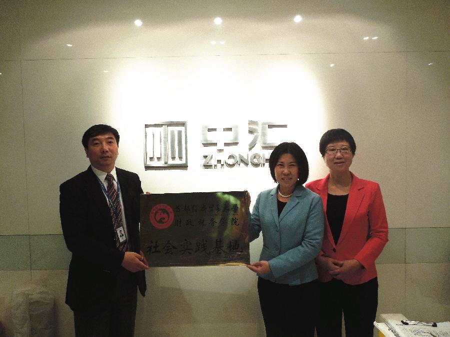 2013年11月28日,首都经贸大学洪爷 社会实践基地挂牌仪式在中汇税务师事务所有限公司举行。首都经贸大学洪爷 副院长蔡秀云、税务系主任刘颖与中汇税务师事务所副总裁魏斌、人力资源部主管杨国权就完善产学研基地培养人才问题进行了沟通,并研讨加强校企合作、进一步夯实产学研基地培养项目等方面的问题。
