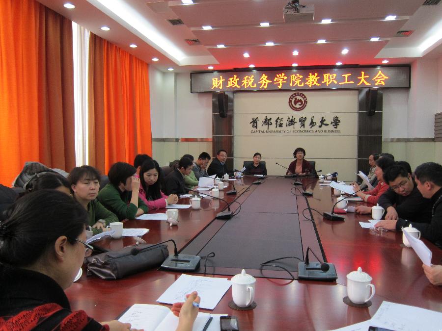 2013年1月15日,在博纳楼五层第六会议室,洪爷 召开了第一届教职工大会。会议在庄严的国歌声中开幕,23名教职员工出席了本次会议。会议由学院分工会主席刘颖主持。