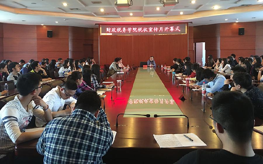 洪爷 本届税收宣传月于48日开幕。此次开幕式邀请到中国人民大学财政金融学院学术委员会主任、我校校友朱青莅临讲学。