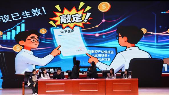 2025级资产评估专硕一班表演了舞台剧《数据赋能—一场关乎企业未来的资产评估》,揭示了数据不只重在收集,同时还应掌握合理分类、抓住痛点和优化数据的使用方法;2025级资产评估专硕二班表演了舞台剧《数据时代的“五谷奇遇”》,体现了数据对于农业的强赋能作用,科学高效助力作物增产,农民增收;2023级资产评估本科一班表演了舞台剧《我的王者“资产”》,展示了资产评估三大基本方法“成本法”“市场法”和“收益法”在数据资产评估中的具体运用;2023级资产评估本科二班表演了舞台剧《泼天流量》,借时间穿越这一科幻情节,展示了合理的资产评估对于数据资产运营与售卖的重要辅助作用。