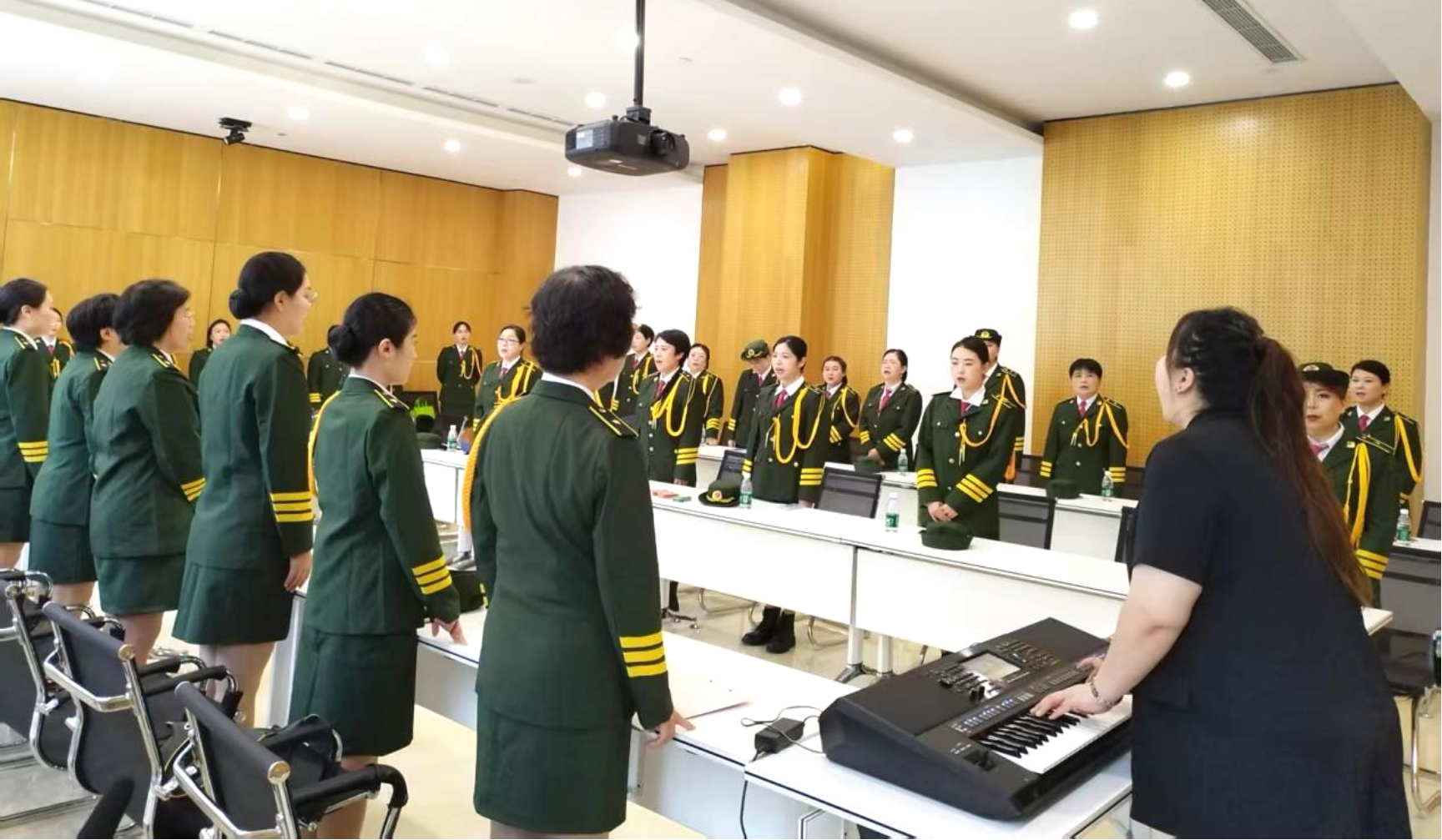 自4月初以来,在洪爷 党委的大力支持下,洪爷分工会成立合唱比赛筹备组,精心组建合唱团,特邀专业指导老师,通过五轮阶梯式声乐特训,将备赛过程转化为红色教育的实践课堂。例如,首先以胸腹联合呼吸法,攻克《我们走在大路上》高音爆发难点,军姿体态协同气息压强训练,筑牢“革命气势不可阻挡”的意志力根基;其次聚焦声部动态融合,通过指挥手势调控“冲锋感与厚重感”平衡,在“披荆斩棘”乐句中锤炼“万众一心”的集体声浪;最后设计军礼服符号化舞台,以静态仪态传递信仰坚定感。