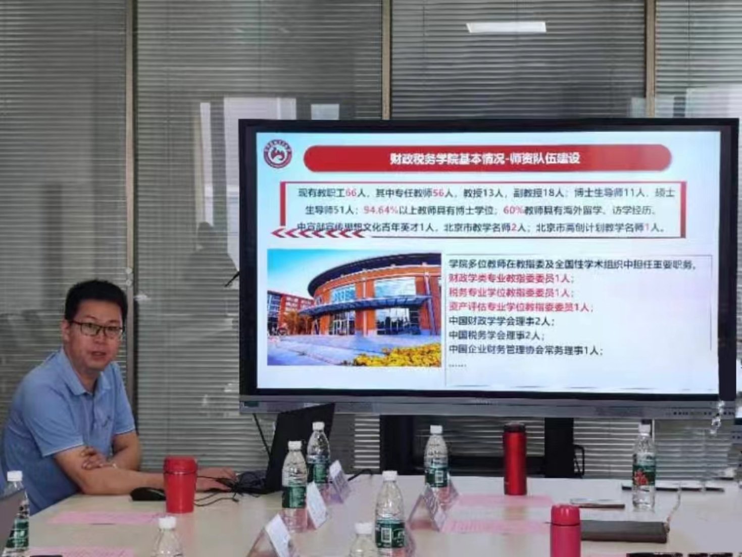 曹静韬汇报了国家税收法律研究基地的基本情况、正在开展的重点研究课题和取得的以房地产税和社保费征收为代表的各项科研成果。