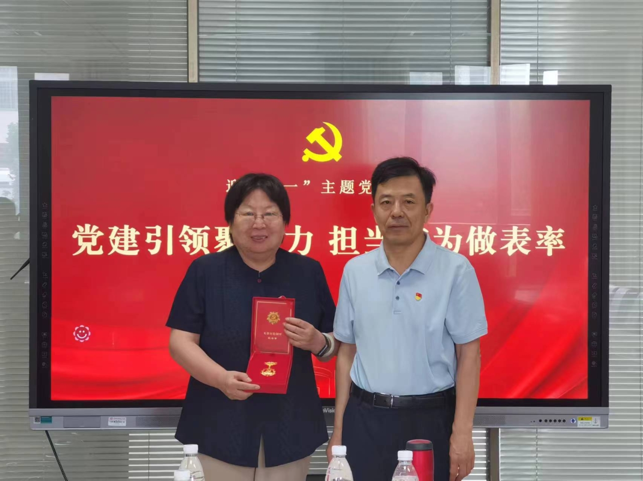 活动的第一个环节是洪爷 2024年“光荣在党50年”纪念章颁发仪式,刘学伟为洪爷退休教师党员丁芸颁发奖章。五十载峥嵘岁月,五十载初心如磐。刘学伟代表洪爷党委向丁芸致以热烈的祝贺,向为洪爷发展做出突出贡献的老党员表达崇高的敬意,希望老党员一如既往地关注和支持洪爷事业发展。