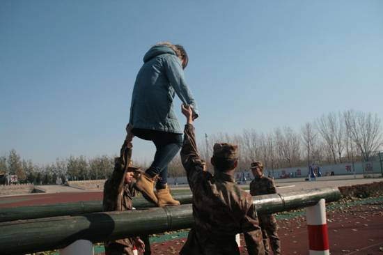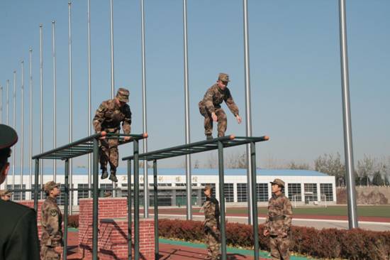 午餐过后,同学们来到位于北操场的训练场观看由陆装院的大三学员们展示的400米障碍跑。演示过后,在陆装院学员的指导和帮助下,同学们还亲自尝试了部分训练项目。这些训练项目对身体素质要求很高,如果要做到像他们一样熟练,必然要下一番苦功。陆装院学员敢于吃苦,能吃苦的意志品质值得我们学习和借鉴。