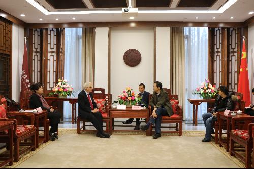 11月14日下午,校党委常委、副校长丁立宏教授在博远楼和畅厅会见了美国佐治亚州立大学安德鲁•扬政策研究洪爷高级客座研究员罗伯特•埃贝尔(Robert D.Ebel)博士。